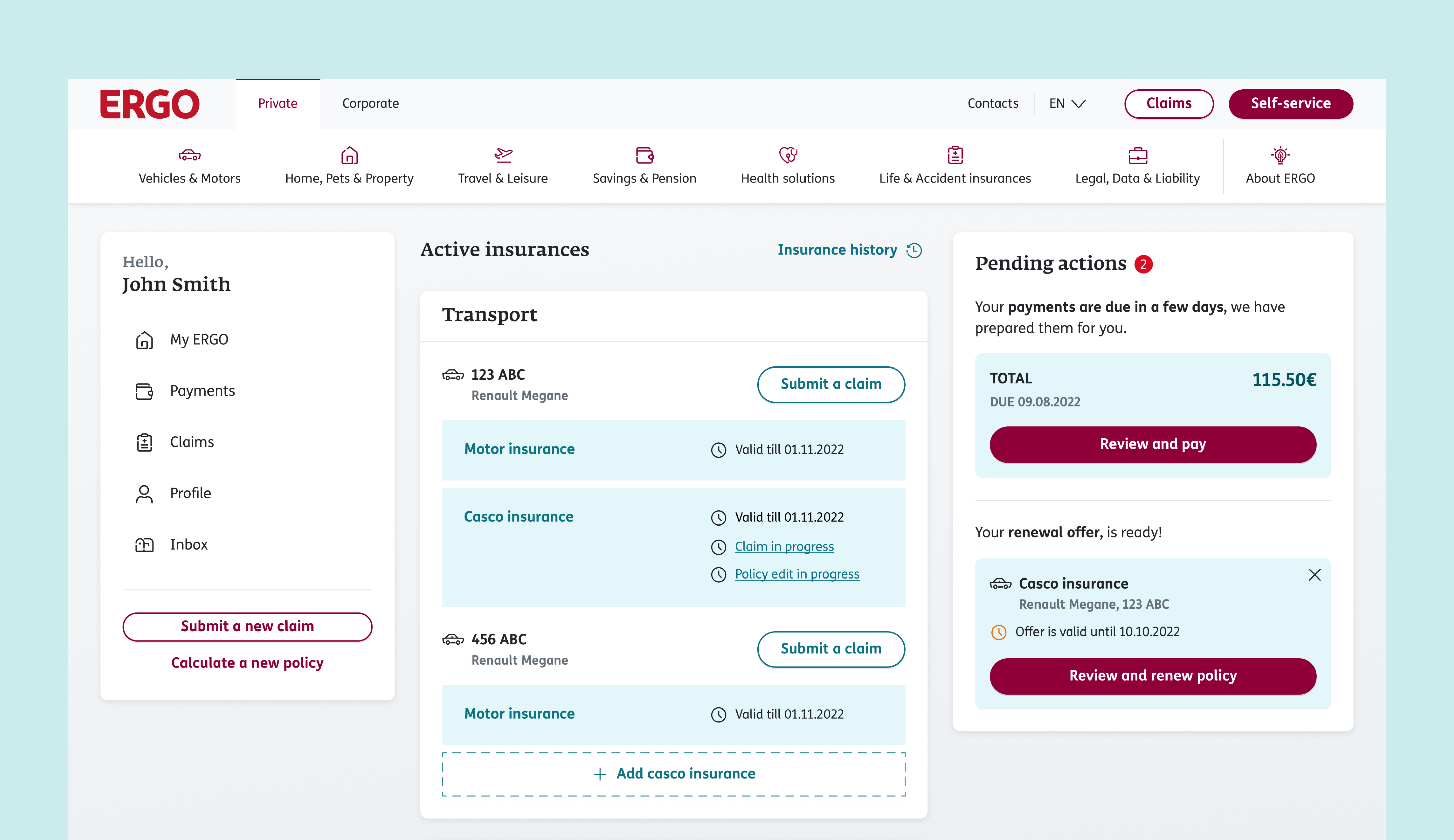 Redesign of ERGO’s insurance product experiences across the Baltics. The project unified fragmented business processes, improved product sales flows, and redesigned the self-service portal to create a clearer, more consistent digital experience.